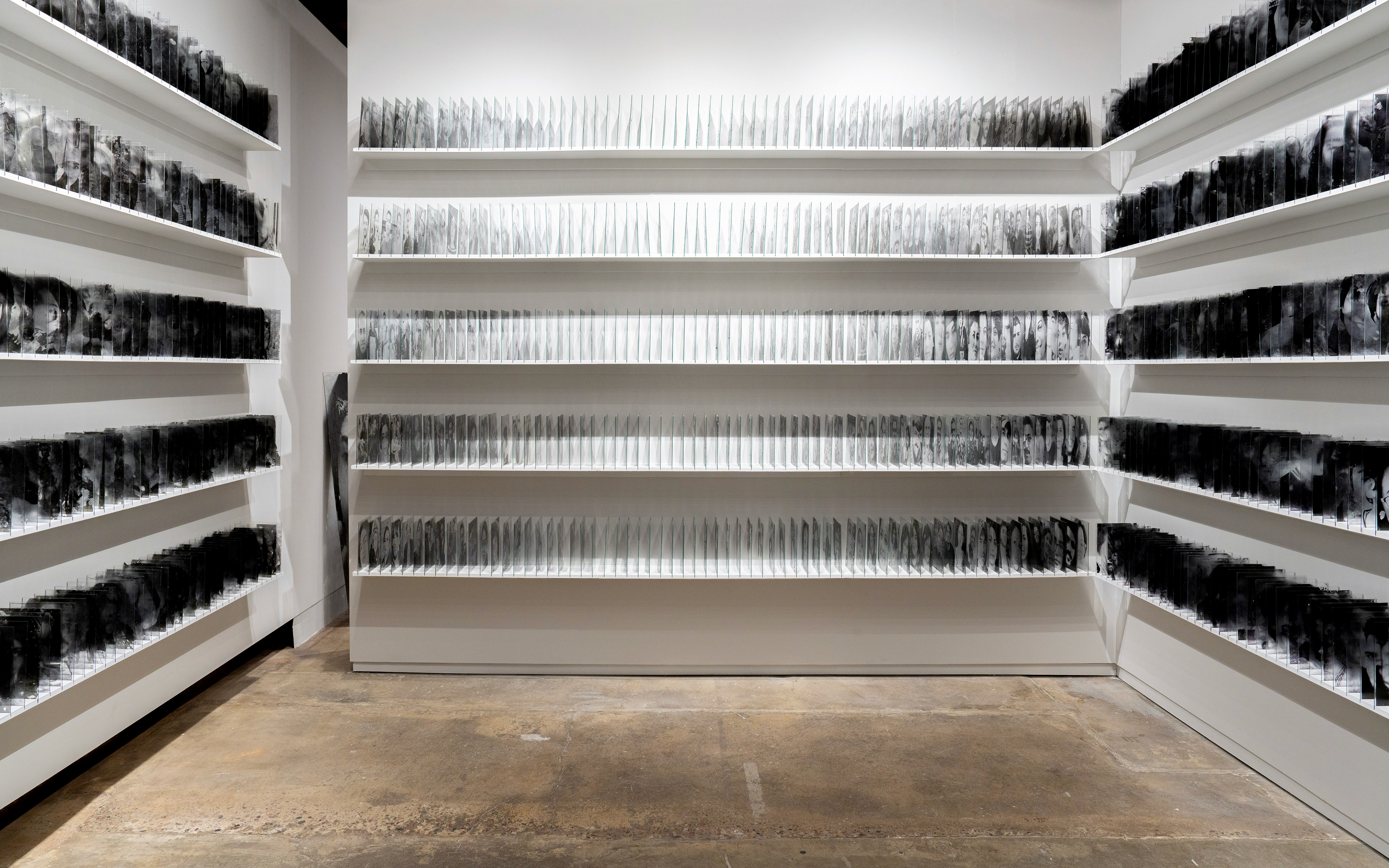 The Room No.2 is an archive/anti-archive—a collection of gathered images from the internet and social media, saved daily. The images are nameless and unmarked, transferred onto glass plates.